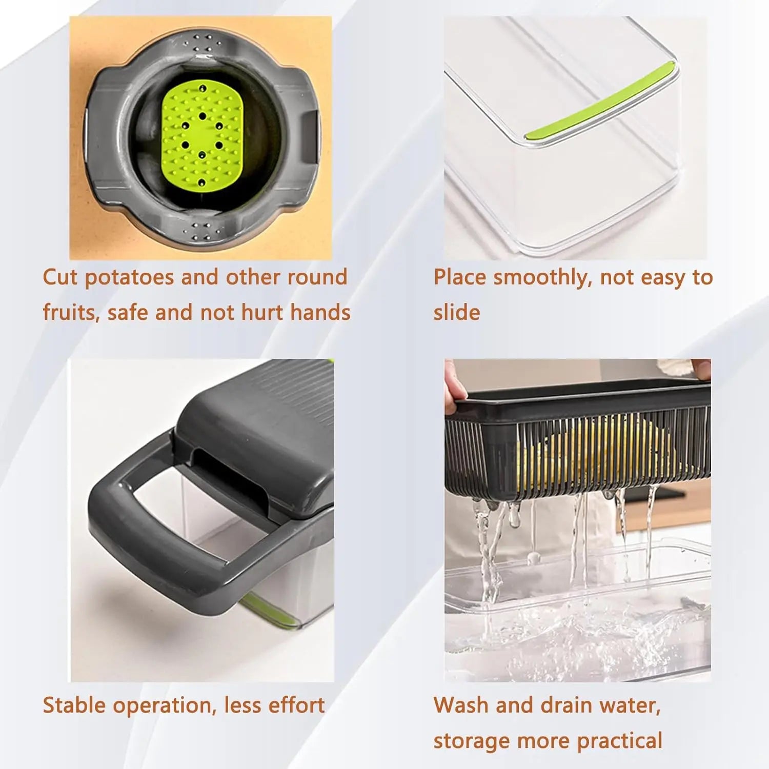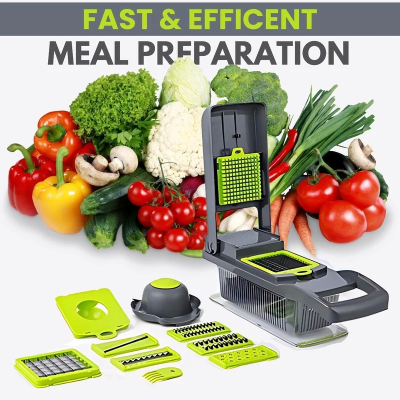 16-in-1 Vegetable Chopper with 8 Blades, Container, Shredder and Strainer, Vegetable Slicing, Dicing, Shredding, Cubing, Multi-